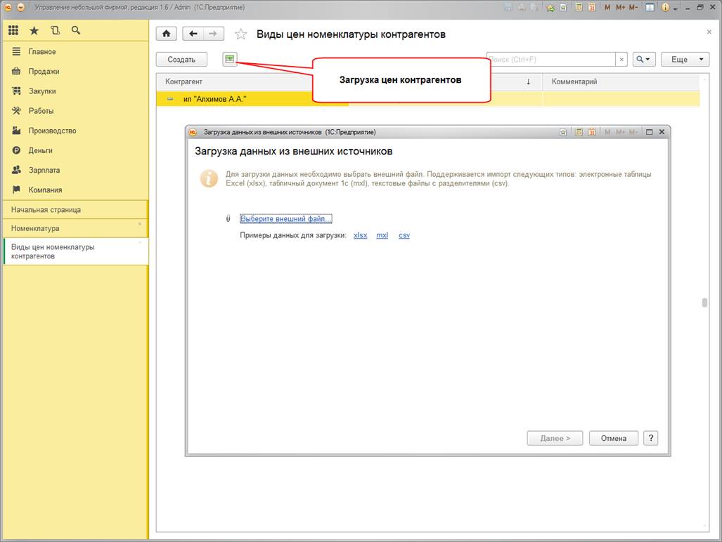 Обмен односторонний. Данные переносятся из конфигурации «1С:Управление небольшой фирмой» в конфигурацию «1С:Розница».