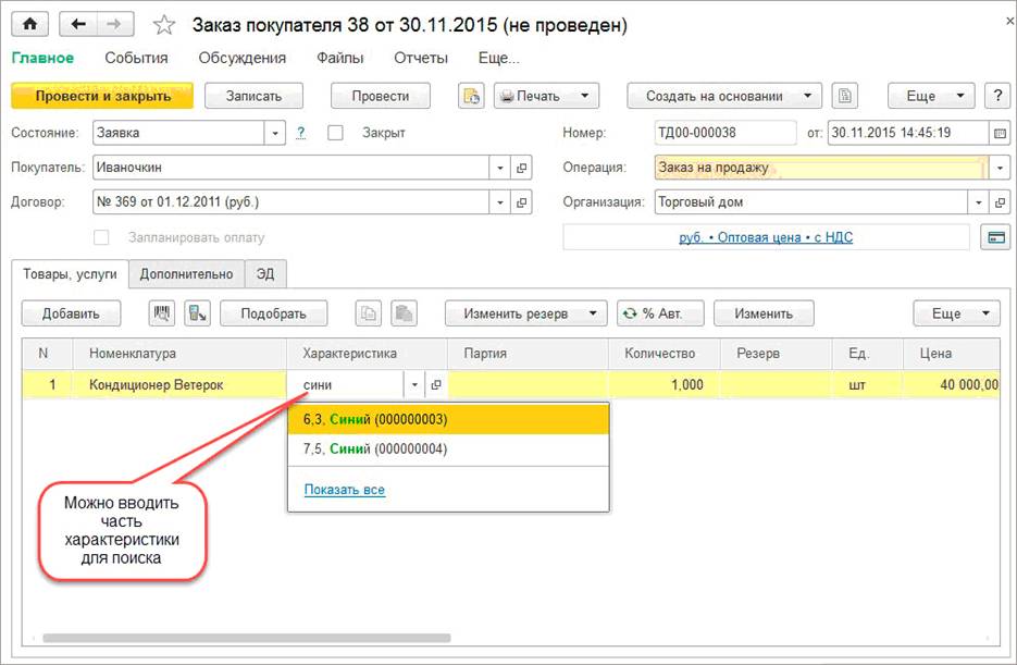 Добавлен поиск по части наименования при вводе характеристики: