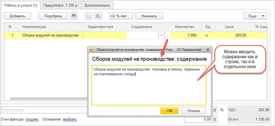 Добавлена возможность вводить содержание для строки документа в отдельном большом окне: