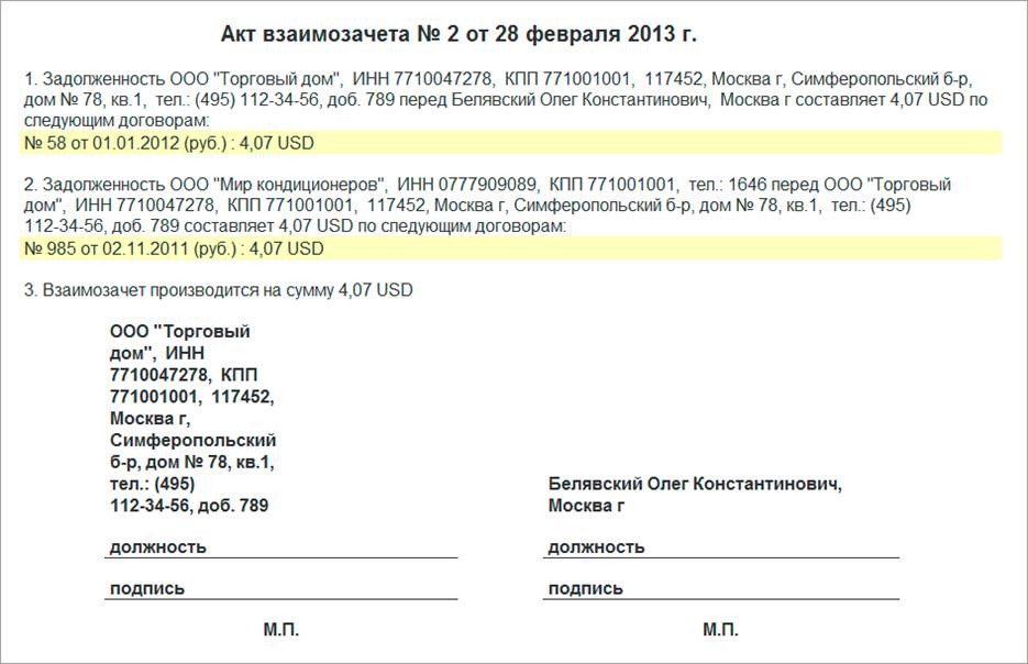 Добавлена печатная форма «Акт взаимозачета» в документе «Корректировка долга».
