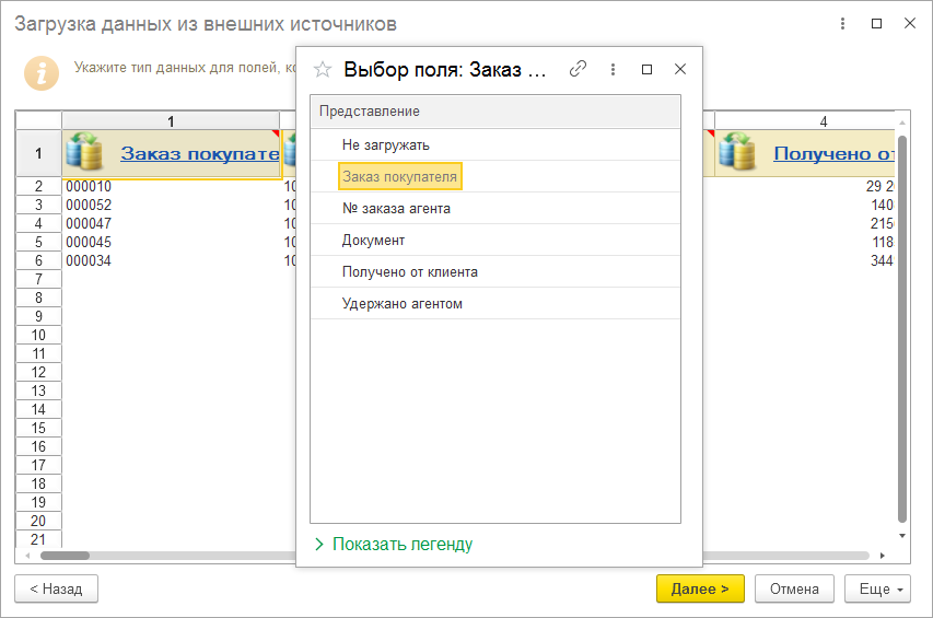 Можно сопоставить колонки в файле и загружаемые поля расшифровки платежа.
