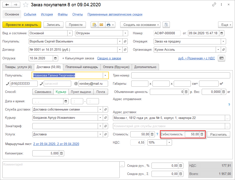 Упростился и процесс ручного заполнения. В заказ покупателя добавлено поле, которое сохраняет информацию о себестоимости доставки заказа покупателя.