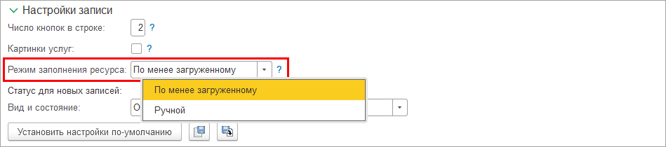 Режим заполнения ресурса: