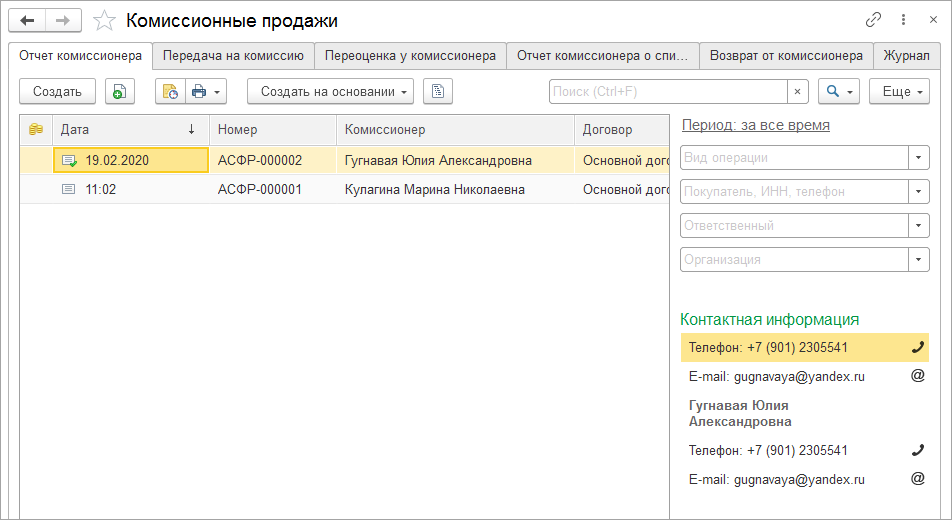 Все документы комиссионной торговли теперь собраны в одном месте – в журнале документов Комиссионные продажи с удобными полями поиска и отборами. Его можно открыть из раздела Продажи.