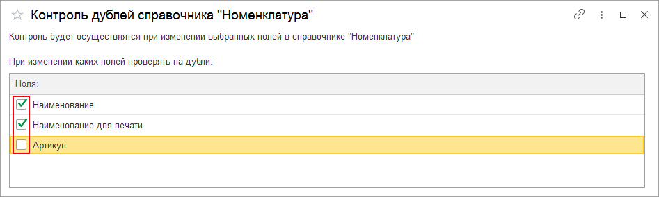 Проверка выполняется при записи и изменении одного или нескольких полей. По каким полям выполнять проверку пользователь может выбрать с помощью флажков.