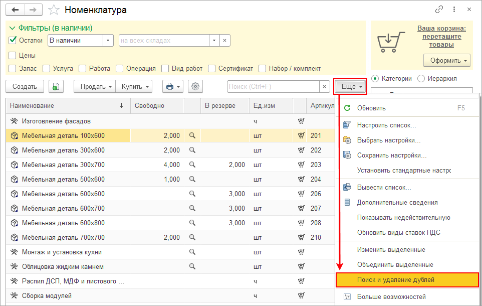 В результате проверки программа предложит объединить дублирующиеся позиции в одну, а лишние пометить на удаление.