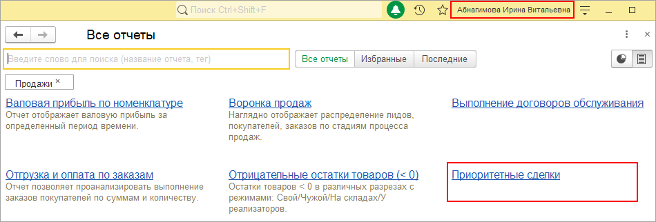 Теперь все выбранные пользователи смогут увидеть новый вариант отчета у себя в интерфейсе.