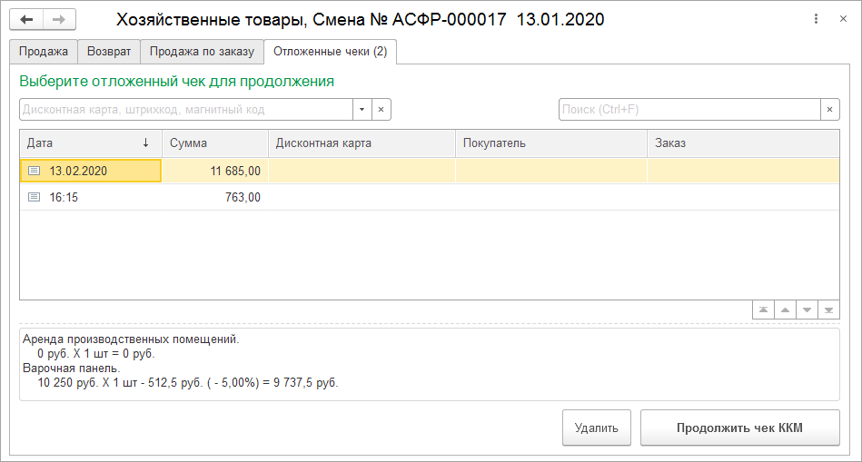 В рабочем месте кассира (РМК) появилась возможность работы с отложенными чеками. Теперь, при заминке покупателя, кассир может в один клик сохранить подготовленный, но не пробитый чек, и перейти к работе со следующим покупателем.