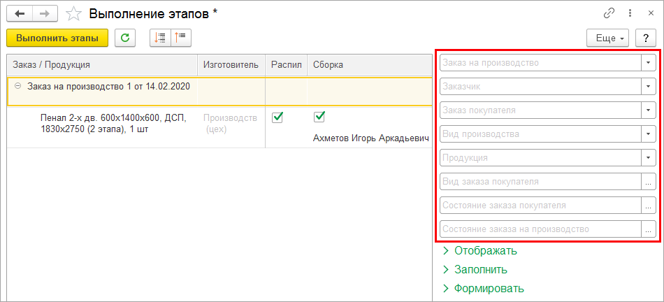 С новой возможностью вы сможете быстро подготовить спецификации для использования в многоэтапном производстве и формировать документы с помощью АРМ Выполнение этапов ().