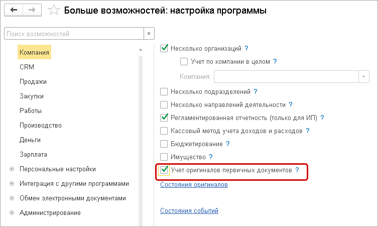 Новая возможность упростит учет и контроль наличия подписанных оригиналов входящих и исходящих первичных документов.