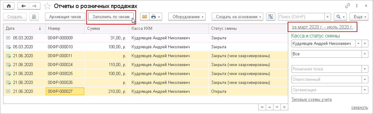 Установите фильтр по периоду в списке отчетов о розничных продажах и