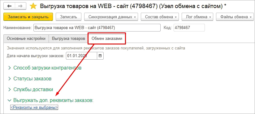 Стала возможной настройка дополнительных реквизитов заказов покупателей к выгрузке на сайт.