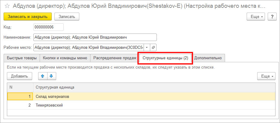 Для рабочего места можно добавить один или несколько дополнительных складов. Настраиваем в разделе Продажи - Настройка рабочего места.