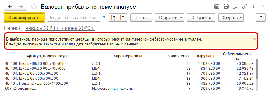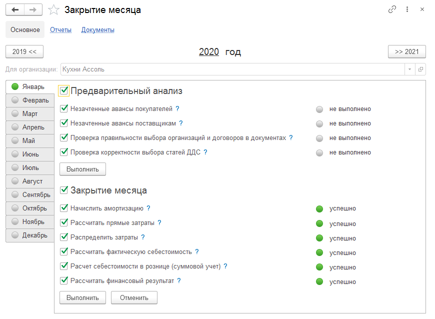 Теперь операции закрытия месяца и предварительный анализ проводятся в одной форме.