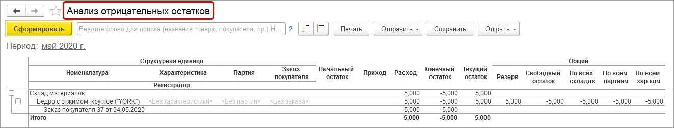 Проверка наличия отрицательных остатков на конец месяца.