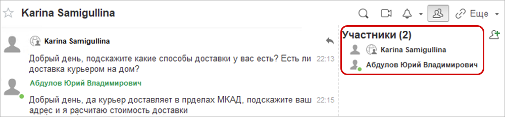 При получении сообщения от нового клиента создается чат в обсуждении и назначенные сотрудники добавляются в участники обсуждения.