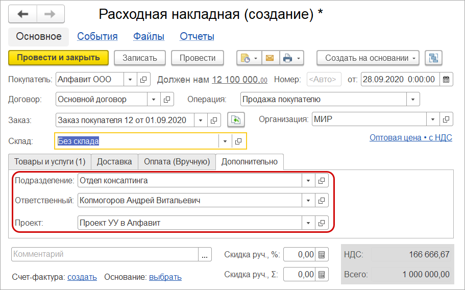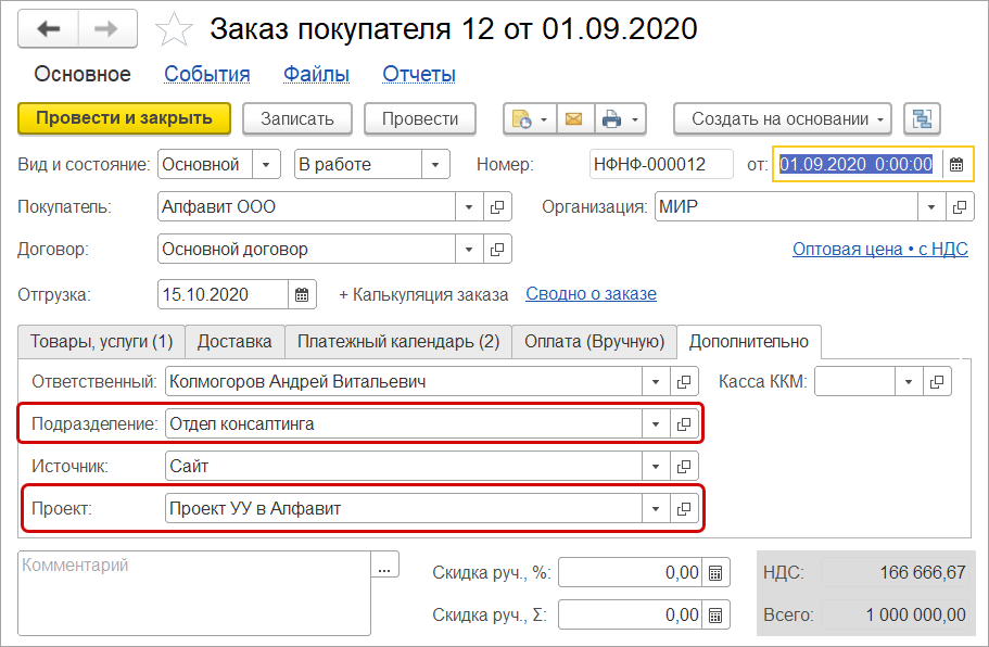 Тогда во всех документах, созданных на основании заказа покупателя, аналитики проект и подразделение заполнятся автоматически.