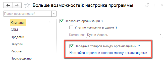 Компания - Еще больше возможностей - Передача товаров между организациями.