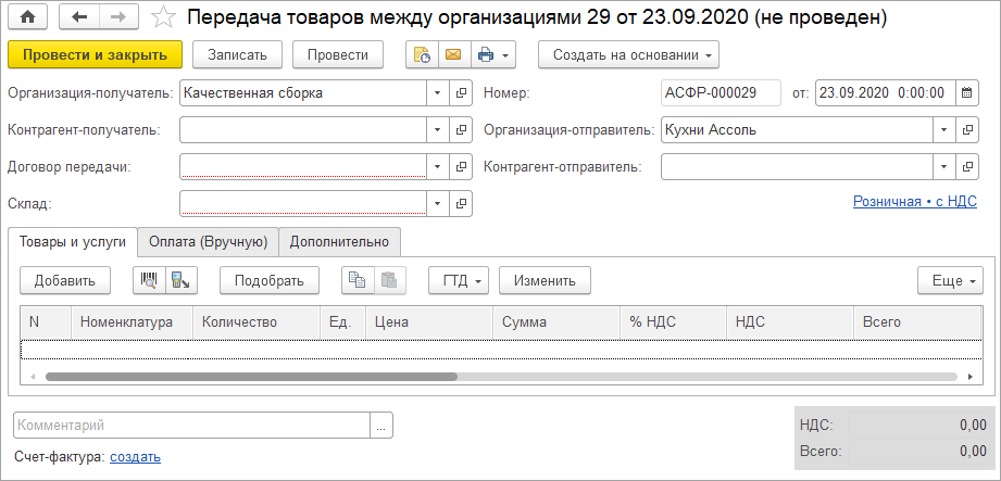 Изначально документ не заполнен и создается лишь для того, чтобы сохранить правильную нумерацию расходных накладных организации-владельца товаров.