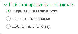 Для того, чтобы воспользоваться возможностью отбора по штрихкоду, используйте настройки "При сканировании штрихкода".