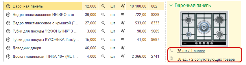 Появилась возможность увидеть аналоги товара, сопутствующие товары и перейти к ним.