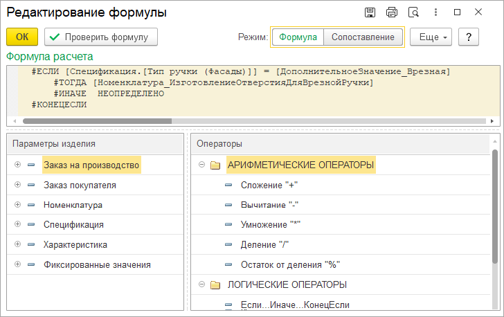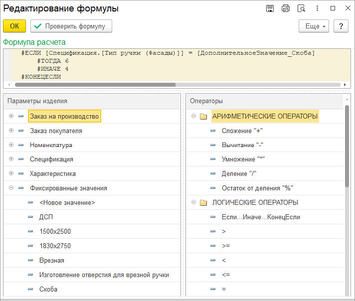 Например, в формуле для врезного типа ручки добавляется дополнительная операция.