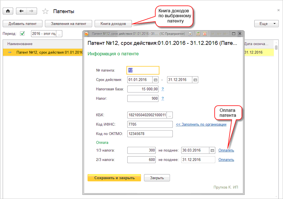 Для индивидуального предпринимателя добавлена возможность ведения учёта по патентной системе налогообложения.