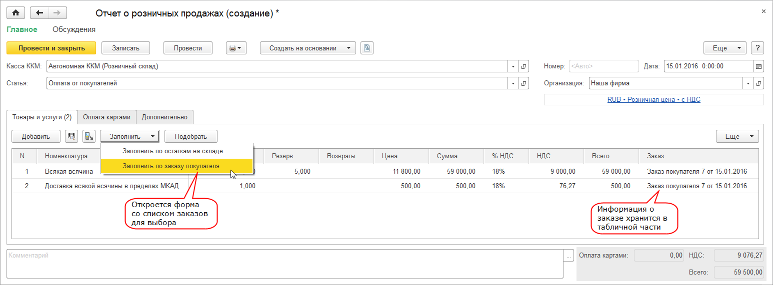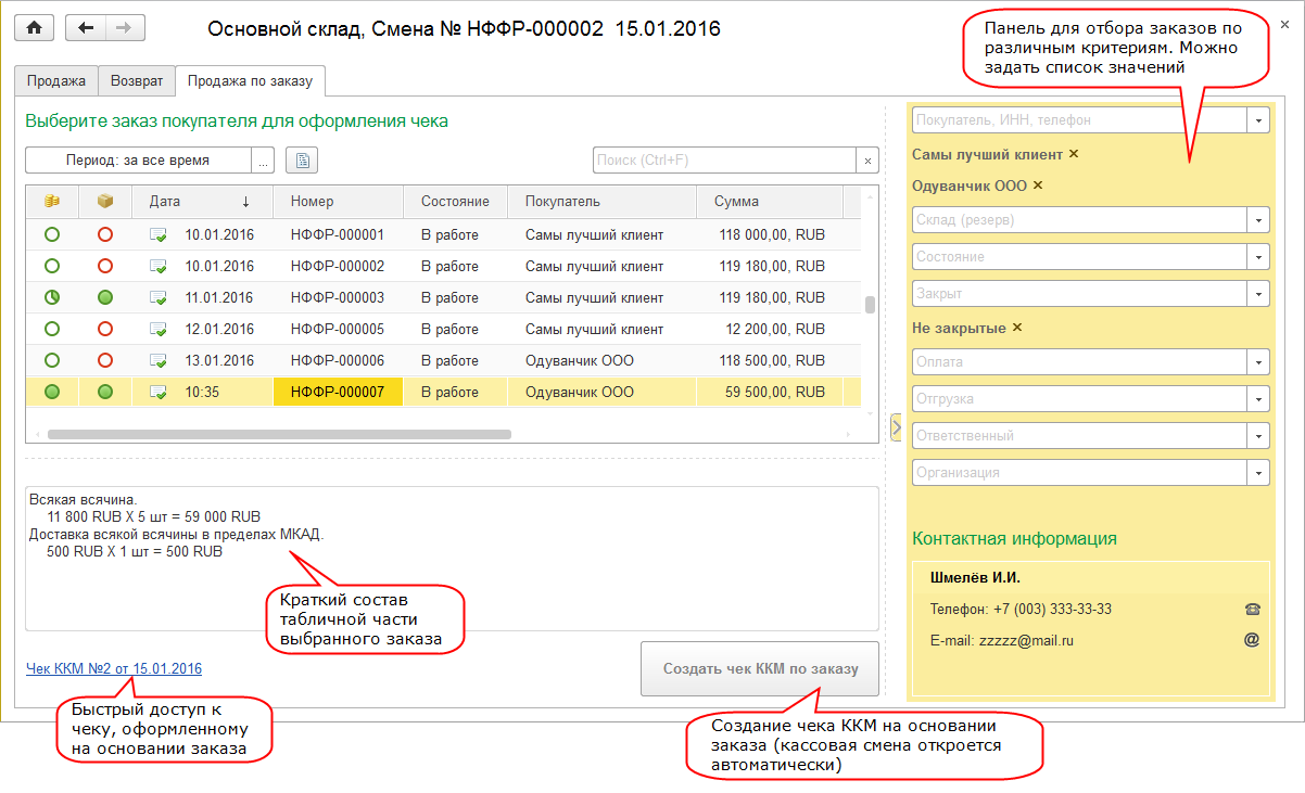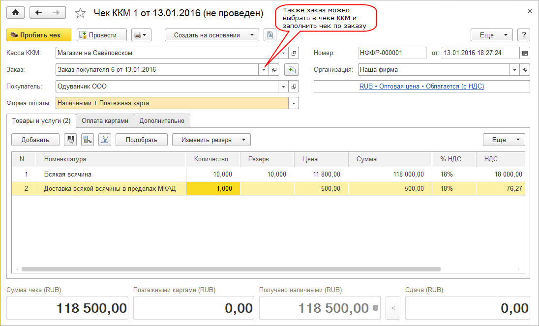 Также можно сказать, что теперь заказы покупателей можно отгружать и оплачивать чеками ККМ.