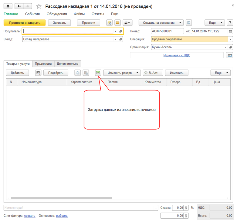 Расширен состав документов, для которых поддерживается загрузка табличной части товаров и услуг из внешних источников.
