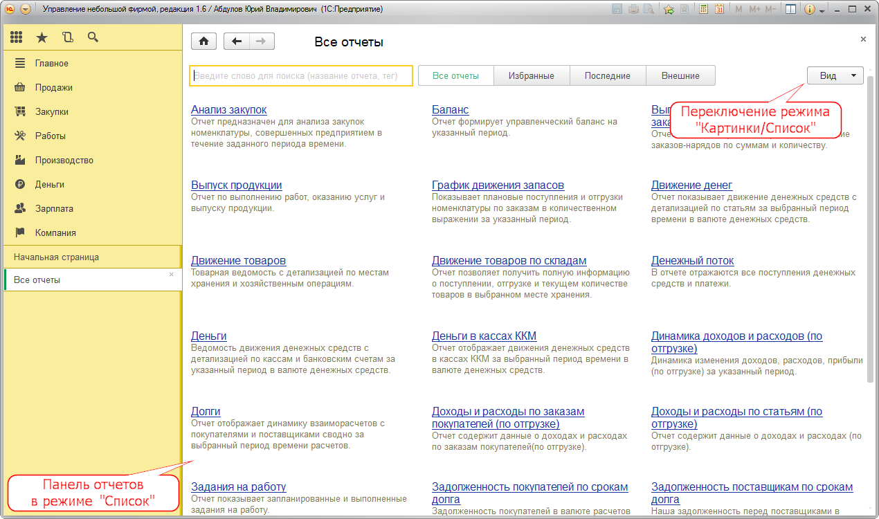 Теперь список отчётов можно просматривать в виде картинок и в виде списка.