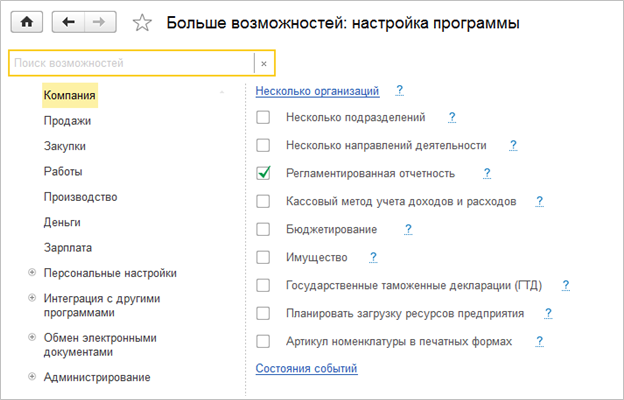 Это можно сделать из любого раздела, нажав на гиперссылку «Еще больше возможностей».