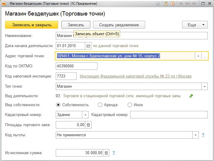 Торговые точки – отдельный справочник для целей расчета суммы торгового сбора.