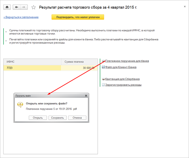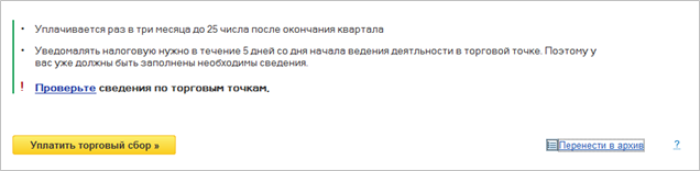 Результаты расчета также достаточно просты и требуют только фиксации уплаченных сумм во все налоговые органы, в которых присутствует регистрация как плательщика торгового сбора.