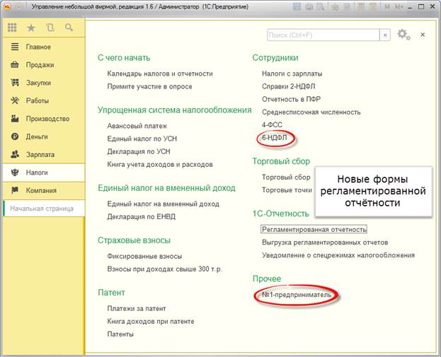 Создание регламентированного отчета доступно по ссылке раздела «Налоги» или с рабочего места «1С-Отчетность». Чтобы сформировать данную форму в систему должны быть внесены сведения и начисления по сотрудникам.