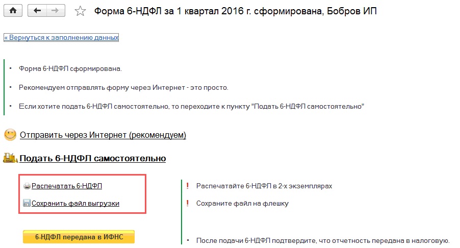 Передача отчета 6-НДФЛ в налоговую инспекцию в электронном виде через интернет осуществляется посредством сервиса ![]()