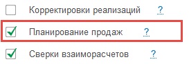 Для доступности документов планирования продаж в настройках системы должна быть включена соответствующая опция (Компания – Еще больше возможностей – Продажи).