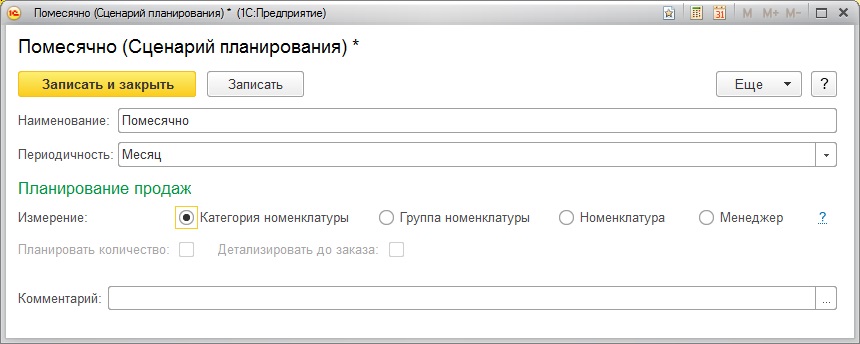 Перед тем, как мы сможем сформировать план, продаж нам предстоит настроить сценарий планирования. Под сценарием планирования подразумевается набор правил и измерений, по которым будут составляться планы продаж компании.