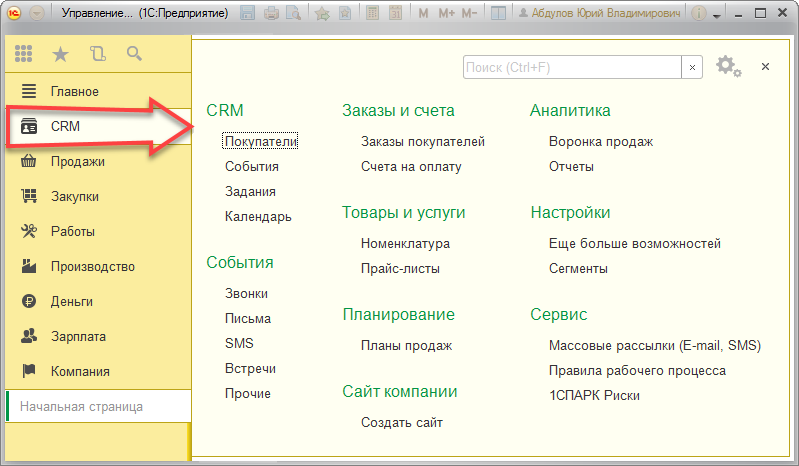 В панели разделов программы появился новый раздел CRM. В нем собран полный набор инструментов для эффективного взаимодействия с вашими клиентами.