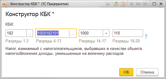 Поле "КБК" можно заполнить как вручную, так и с помощью конструктора.
