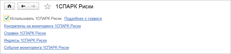 Чтобы начать работу с сервисом нужно включить опцию "Использовать 1СПАРК Риски" в разделе CRM.