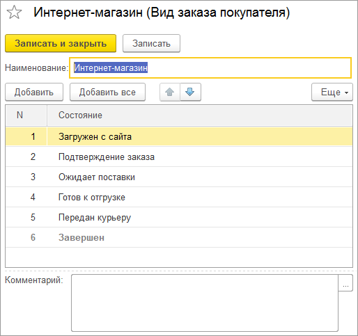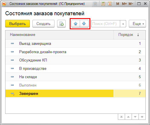 При включенной опции порядок состояний будет храниться в элементе справочника "Вид заказа".
