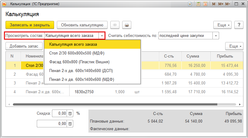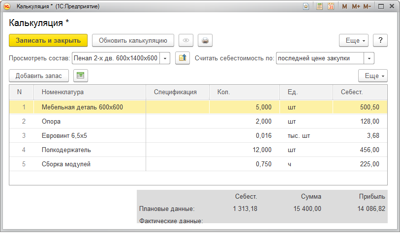 В случае, если компания занимается производством, калькуляция поможет рассчитать плановую себестоимость заказа, состоящего из изделий и полуфабрикатов, на основании спецификаций.