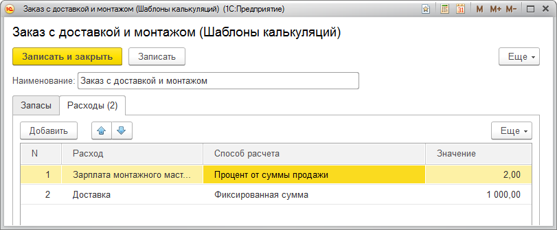 В калькуляции пользователь сможет учесть все затраты, такие как: бонус менеджера по продажам, зарплата монтажника, затраты на сборку и доставку заказа, расход материалов на упаковку и другие.