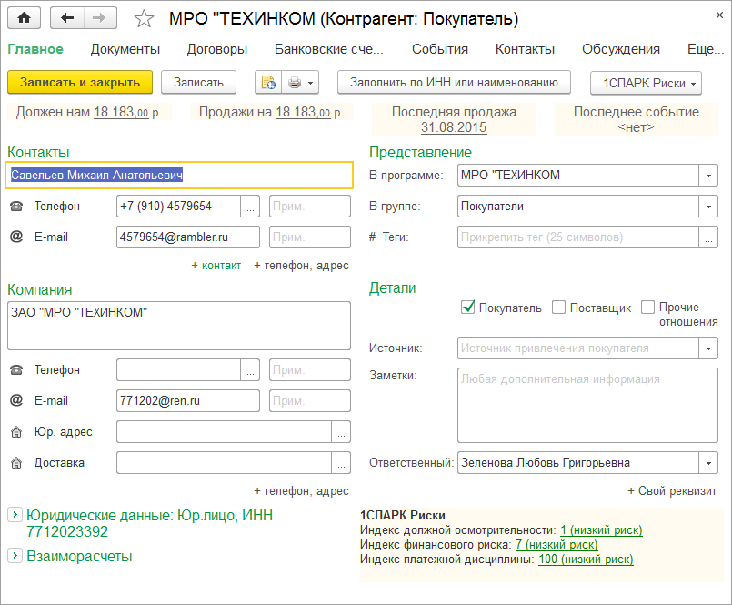 Что такое 1СПАРК Риски? Новый сервис дает пользователям программы 1С:Управление небольшой фирмой возможность комплексно оценивать благонадежность контрагентов, управлять кредитными и налоговыми рисками и проводить инвестиционный анализ.