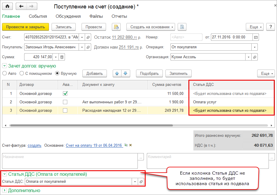 Колонка Расходы и детализация по счетам учета будут видны только при включенной функционально опции Вести учет расходов.