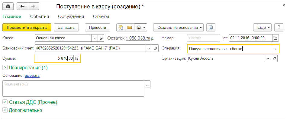 Команда Зарегистрировать телефонный звонок (создать событие) откроет форму создания нового События с типом Телефонный звонок.