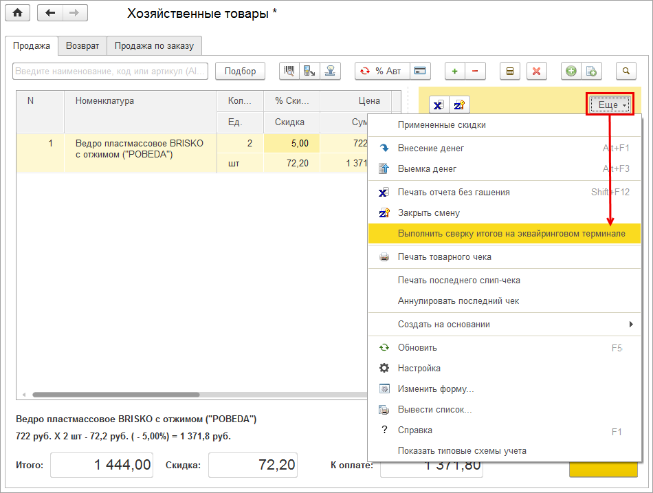 В новой версии добавлена возможность выполнить сверку итогов на эквайринговом терминале при закрытии кассовой смены. В результате выполнения операции распечатывается отчет о проведенных за смену операциях.