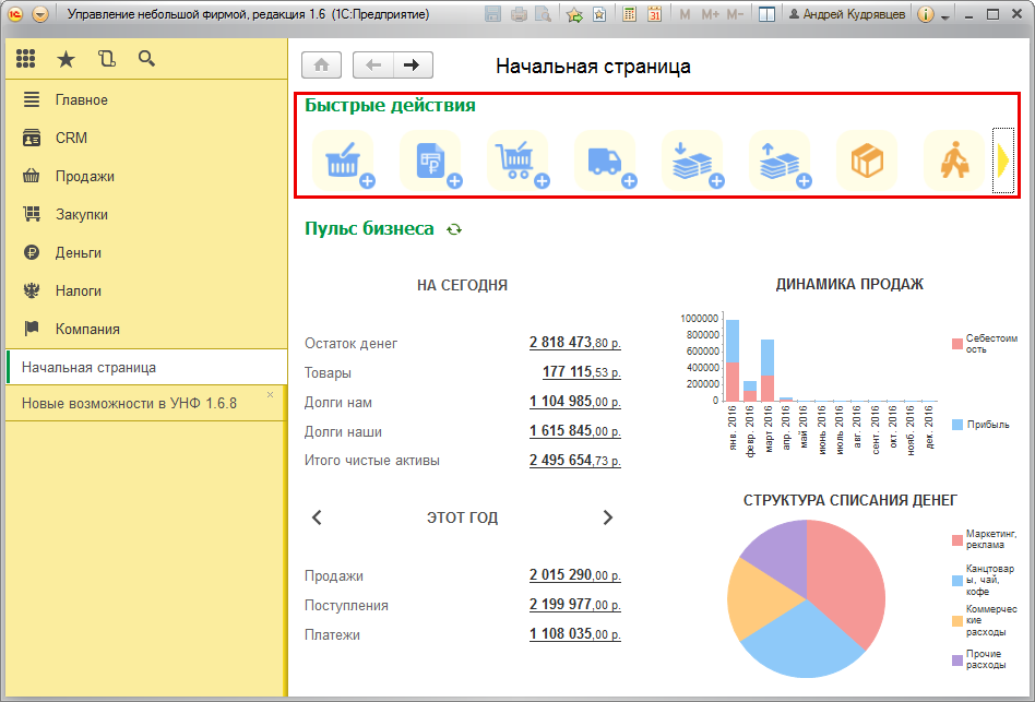 В новой версии в монитор Пульс бизнеса добавлена панель Быстрые действия.