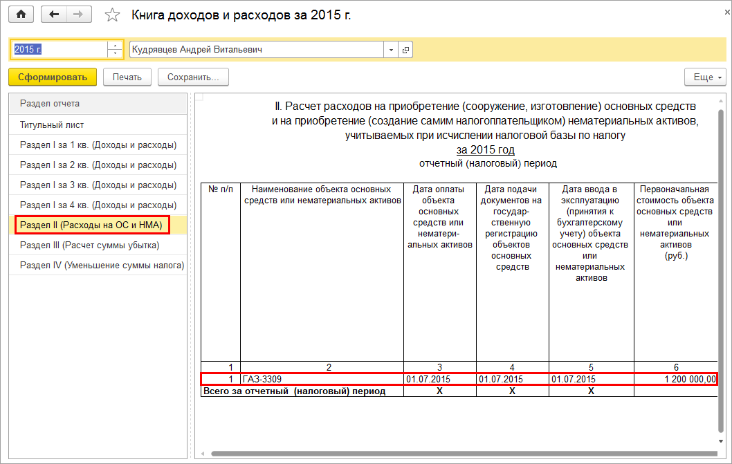 Реализована возможность автоматического заполнения 2 раздела и расходов на оплату ОС в Книге учета доходов и расходов (КУДиР) по УСН.