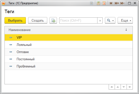 В открывшемся окне можно создать новый тег или выбрать один из существующих. После нажатия на кнопку Выбрать всем выделенным контрагентам будет присвоен выбранный тег.